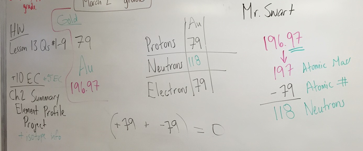 We extended our learning about neutrons yesterday with an lesson about isotopes. The Lesson 13 PowerPoint explains how certain elements like carbon always contain the same number of protons, but may contain different numbers of neutrons. Students then practiced calculating the number of protons, neutrons, and electrons on the Lesson 13 Worksheet. For homework, students should complete questions 1-9 at the end of Lesson 13 in the textbook. For extra credit, students may earn 10 extra points by researching about one of the elements and compiling their research into an Element Profile Project (see Chapter 2 Summary page in the textbook for instructions). An additional 5 points may be earned by adding on a section explaining which isotopes of the selected element are naturally occurring, the proportion of each isotope, and the atomic structure of each isotope (the number of protons, neutrons, and electrons in each isotope). If an isotope has a particular scientific use, that should also be included. Remember, no school tomorrow.