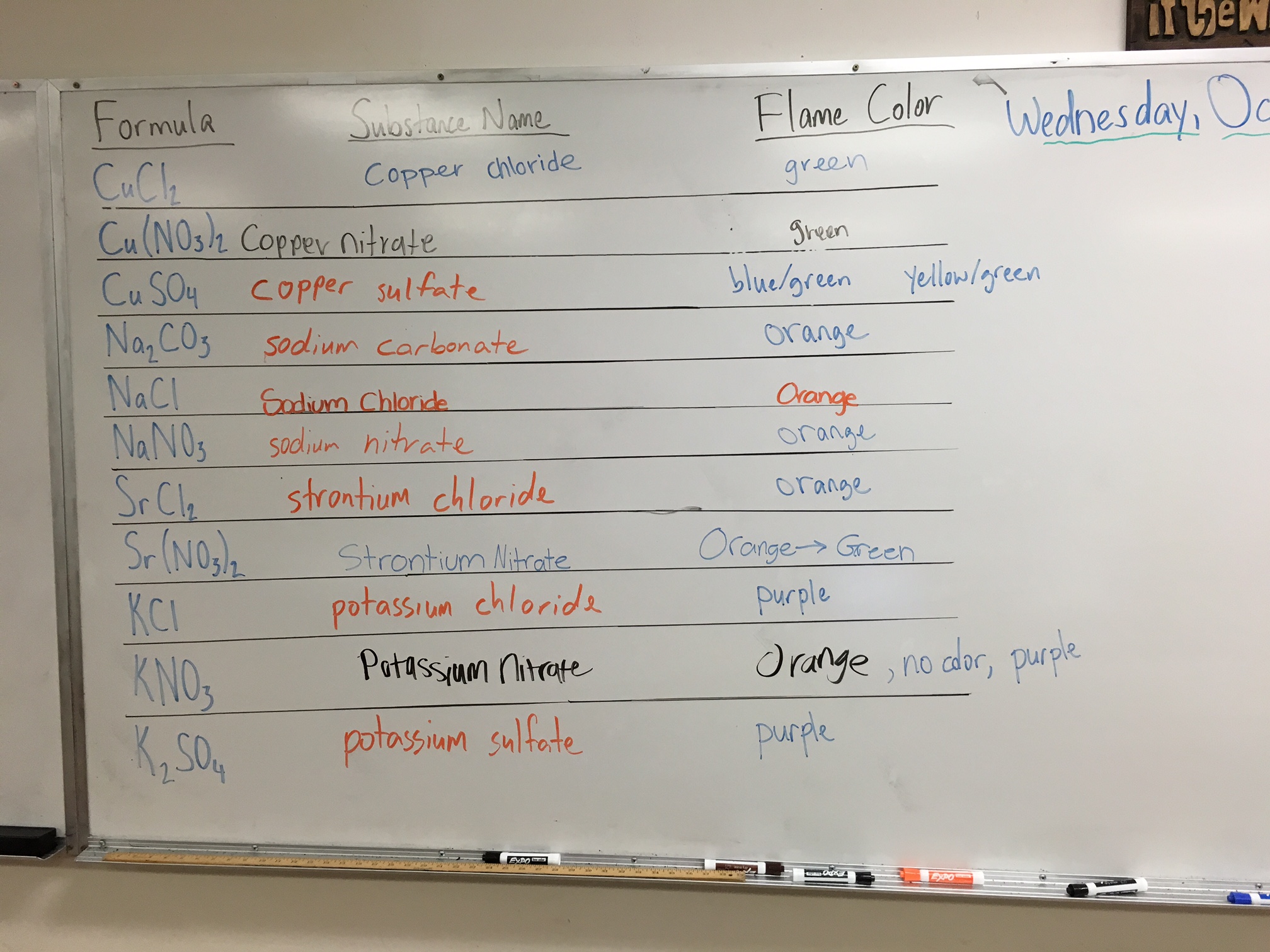 We began the class period by creating a table of the data from yesterday’s Flame Test lab, which students then used to complete the Lesson 17 Worksheet.