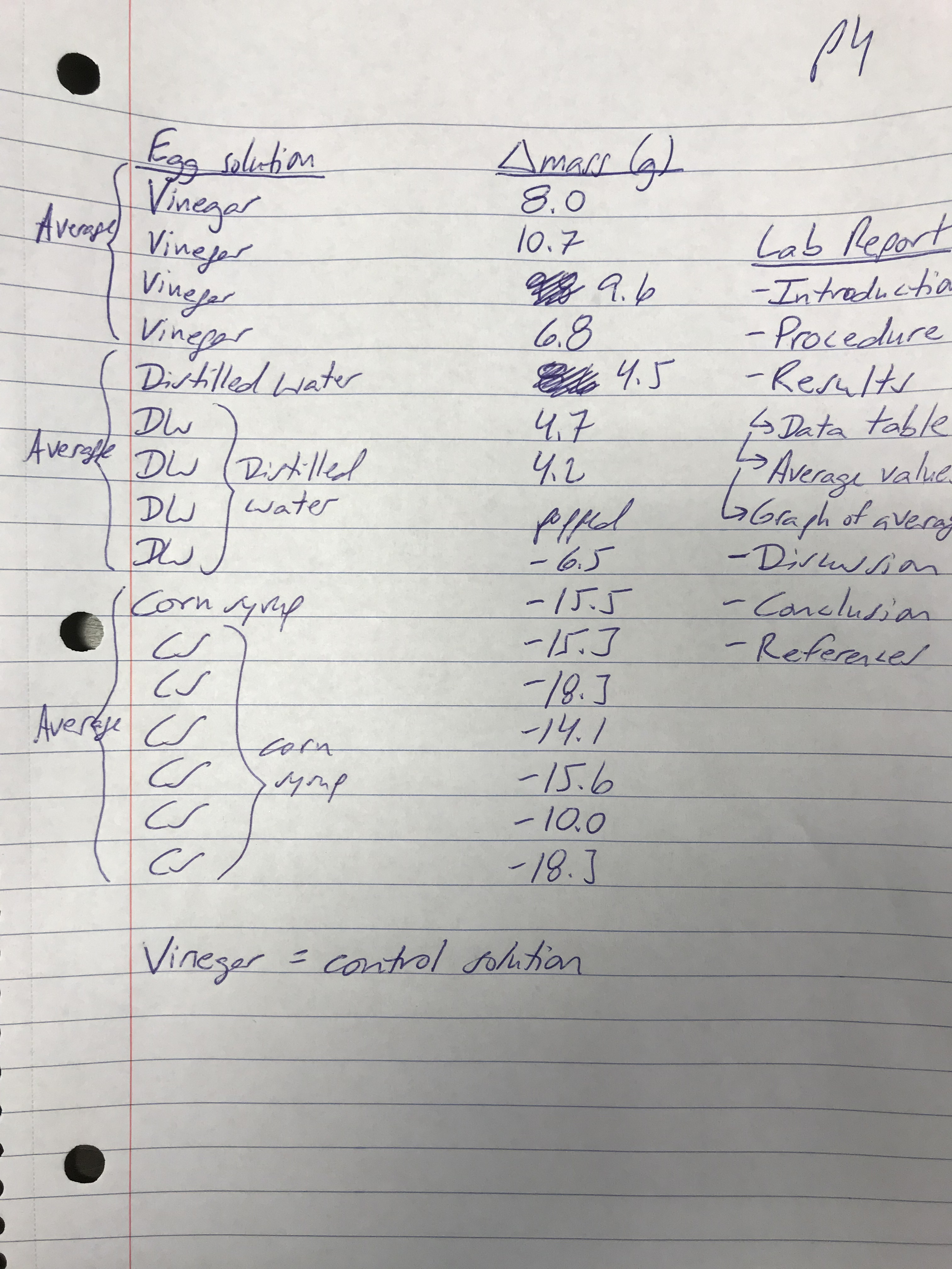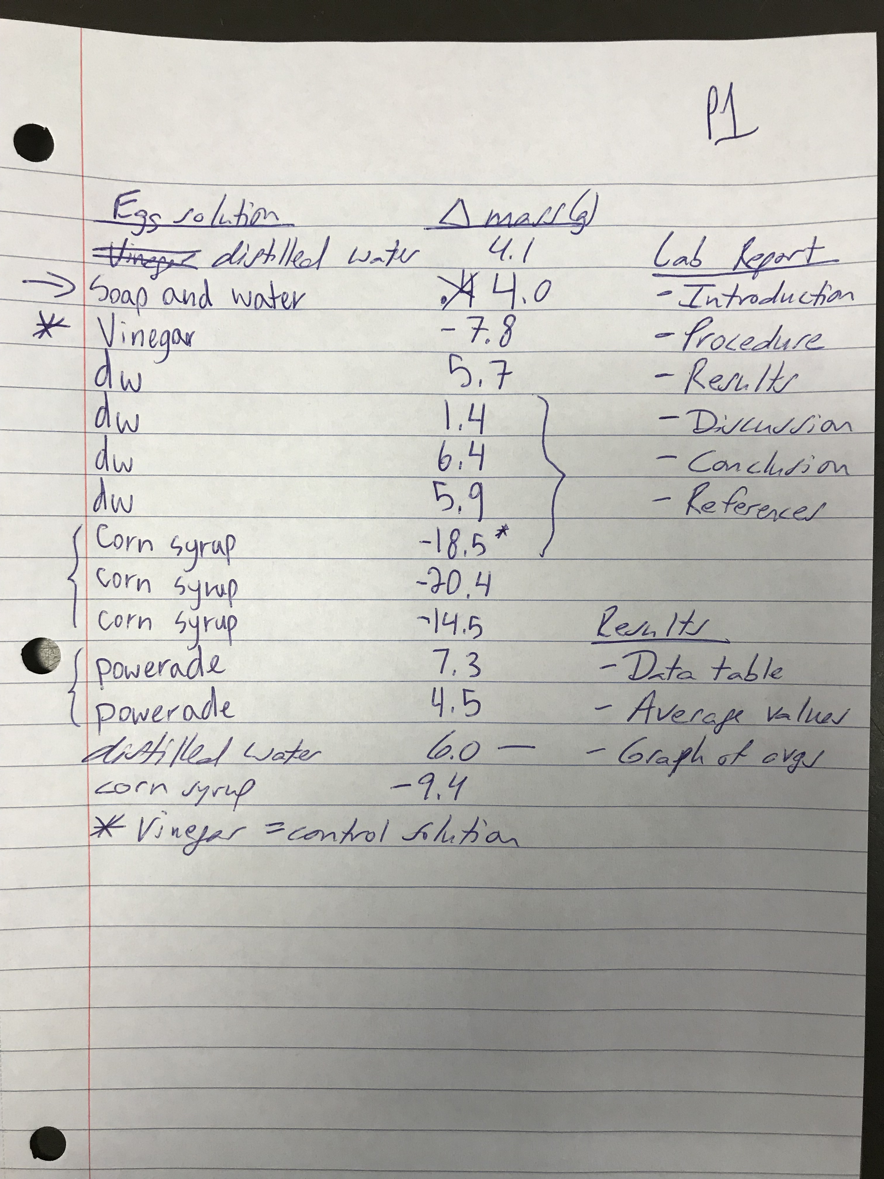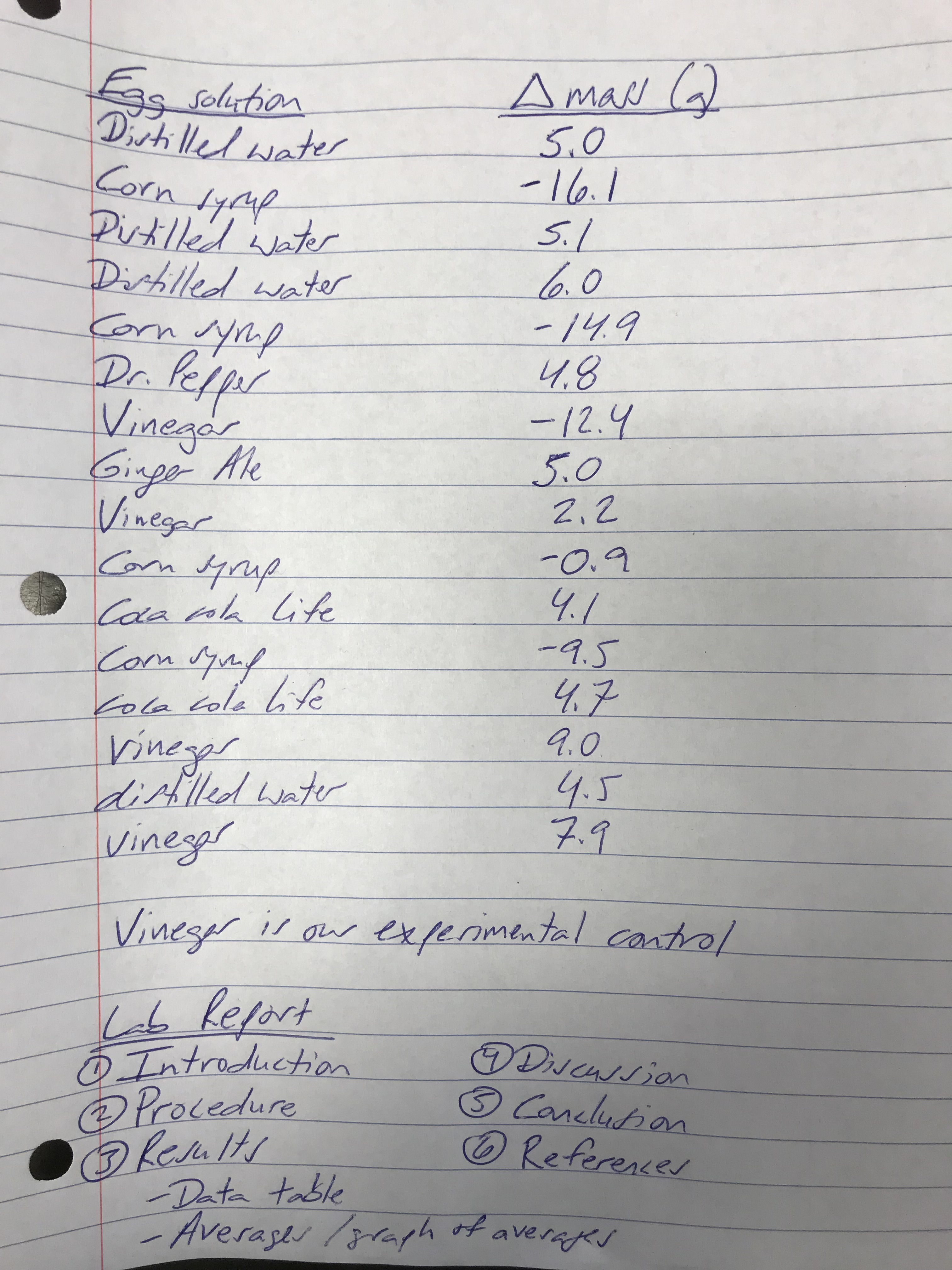 - Calculate the change in mass of the egg