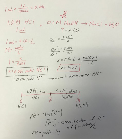 On Thursday, class began with students completing the Chemistry Textbook Pilot Student Survey. After the survey, we returned to the pH lab, analyzing our results in the context of a set of class notes (pictured below). We also practiced calculating pH from molarity and molarity from pH. Students were reminded that Google Chrome can be used as a calculator. Desmos.com offers a nice web-based scientific calculator as well.